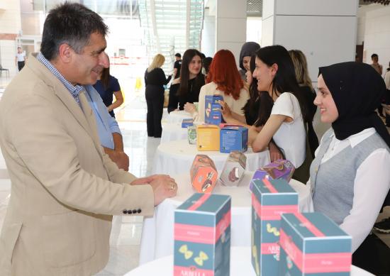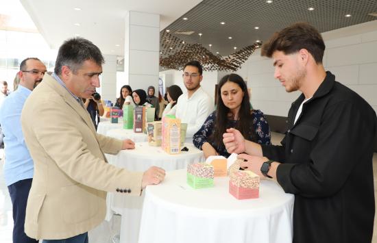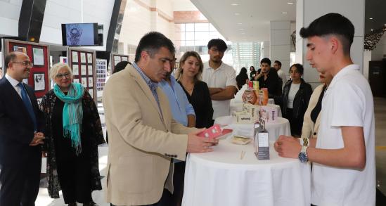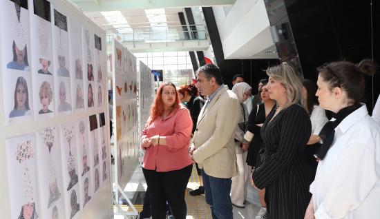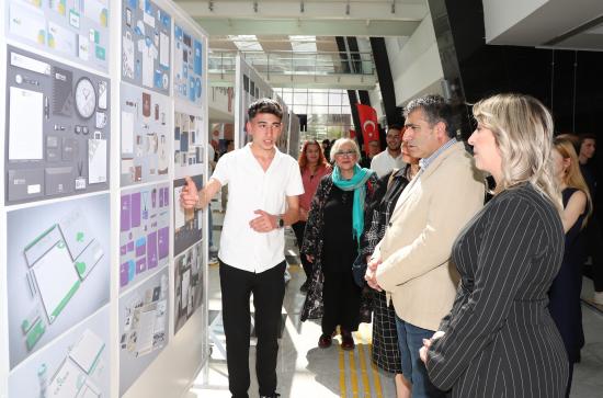 Daha sonra, Grafik Tasarım Programı 1. ve 2. sınıf öğrencilerinin dijital tasarımlar, tipografik çalışmalar, ambalaj tasarımları, temel tasarım projeleri, özgün baskılar ve illüstrasyon çalışmalarından oluşan serginin açılışını katılımcılarla birlikte gerçekleştiren Rektör Aktekin, stantları gezerek öğrencilerden eserleri hakkında bilgi aldı.