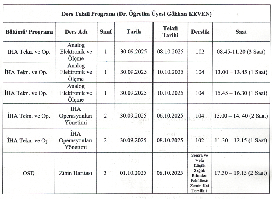 - Ders Telefi Programı (Dr. Öğr. Üyesi Gökhan KEVEN)
